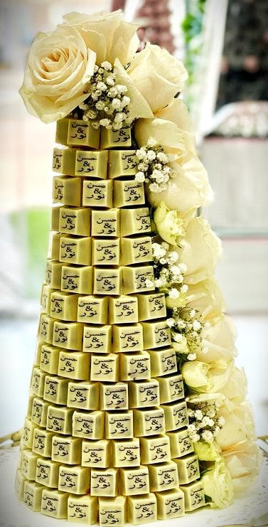 شوكولاتة بيضاء بلاسماء بنكهات مختلفة مع الزهور